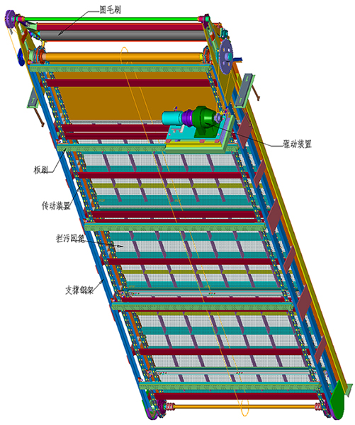 主傳動部分:實現板刷的上、下移動。功能:清除網篦上的污物。