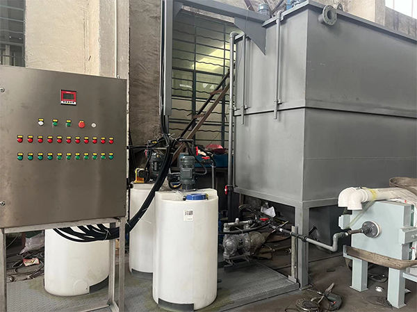 4、處理過程:設備自動完成預處理、沉淀工序,當清水池的液位達到高位時,排水泵自動啟動進行排水。